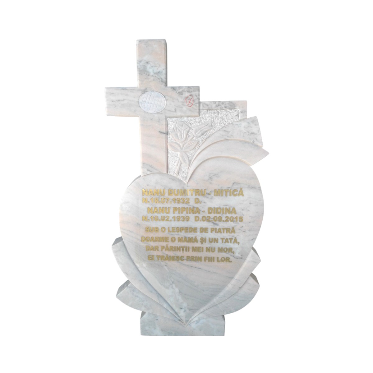 Finisajele precise evidențiază textura și nuanțele naturale ale marmurei, făcând fiecare monument unic. Sobrietatea formelor și eleganța detaliilor oferă un aspect rafinat, care respectă memoria celor dragi.